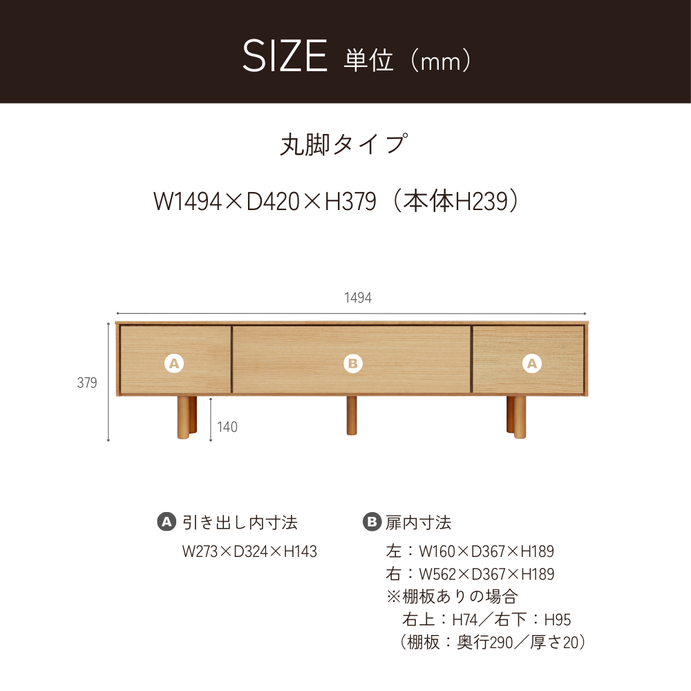 サイズ 丸脚:W149.4×D42×H37.9(cm)