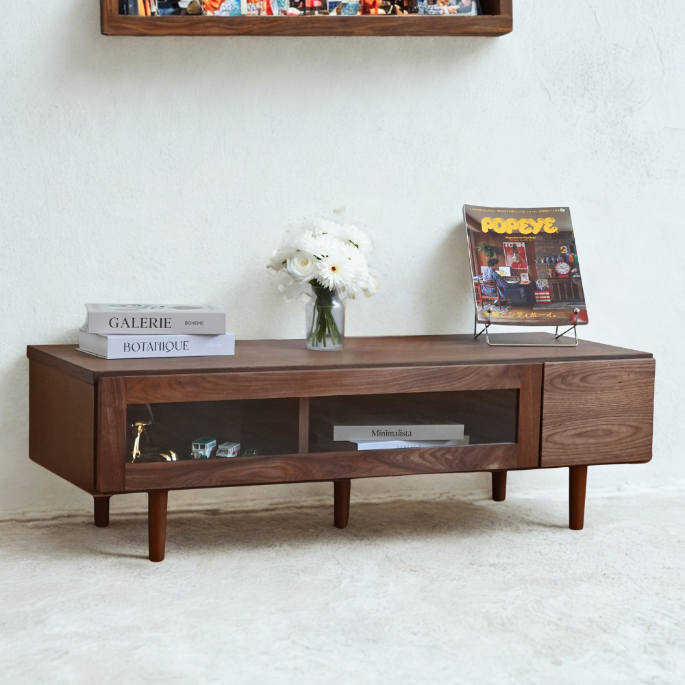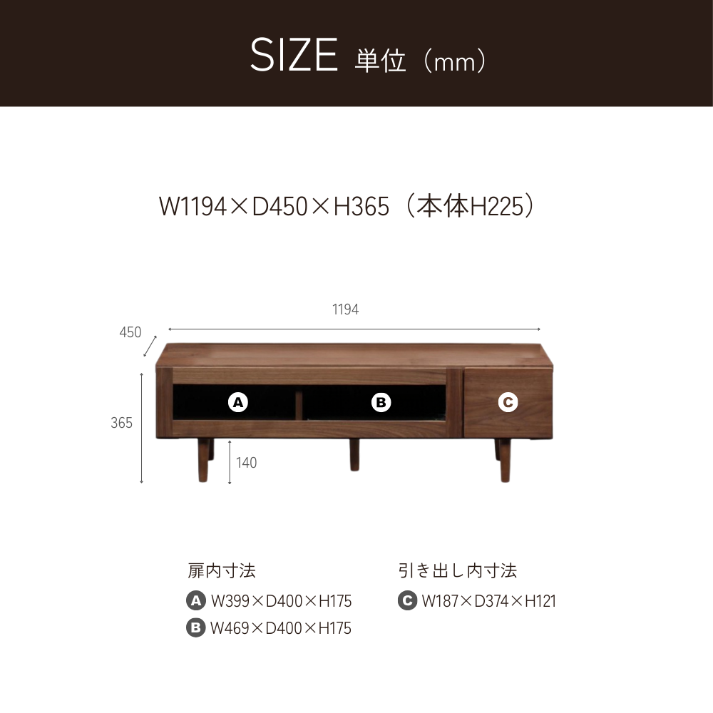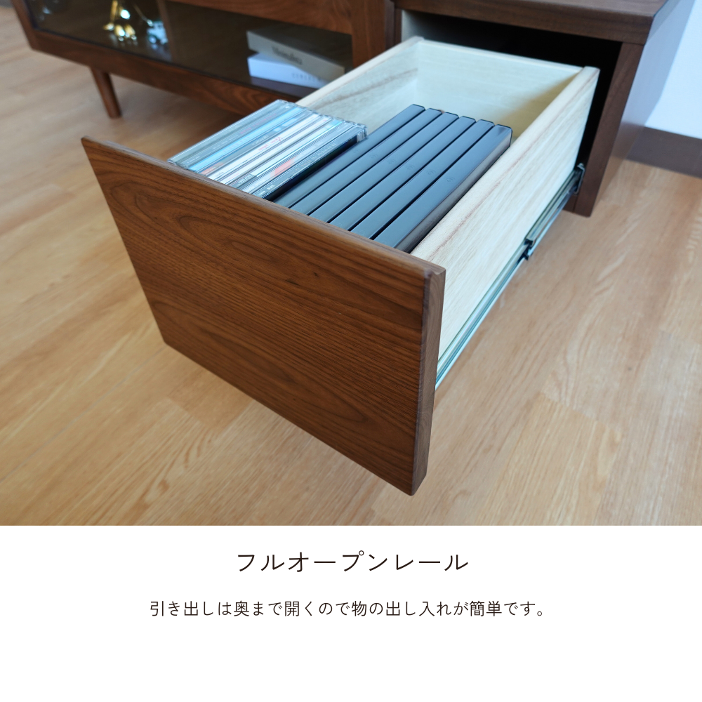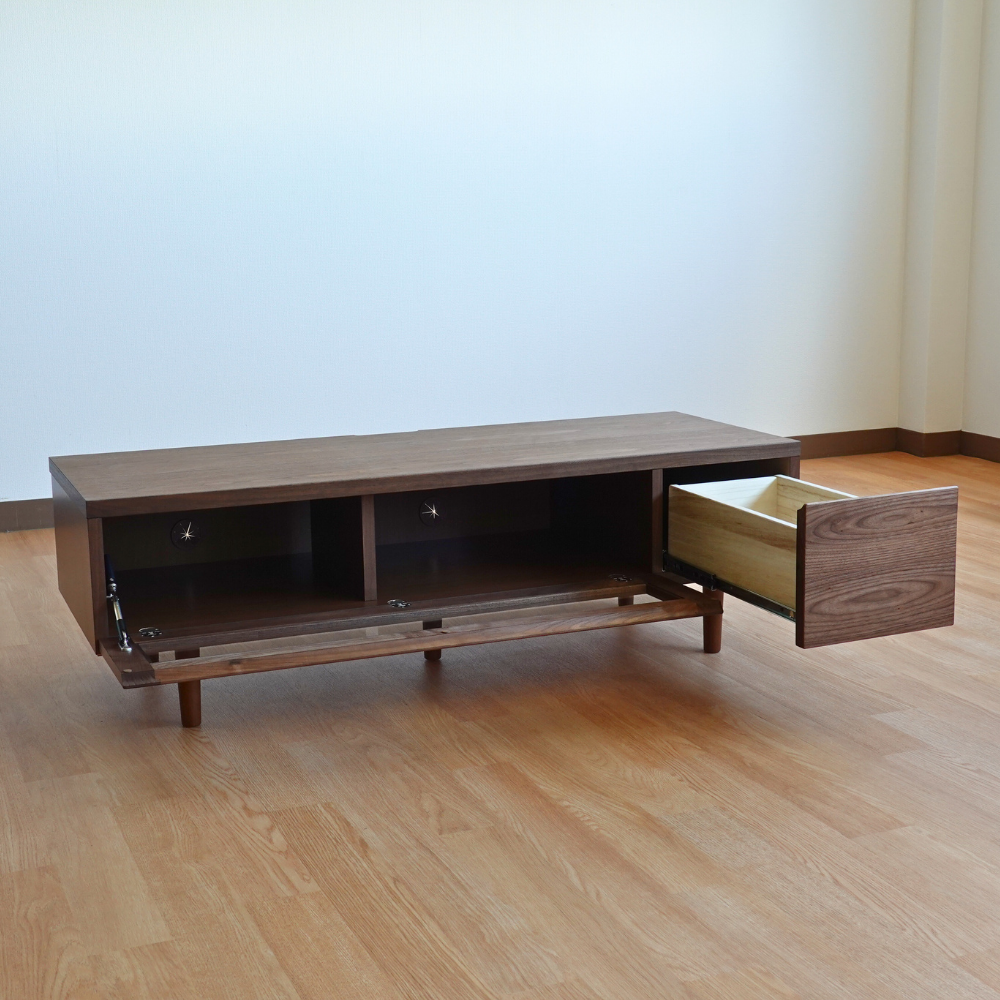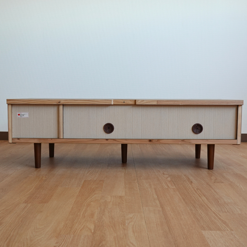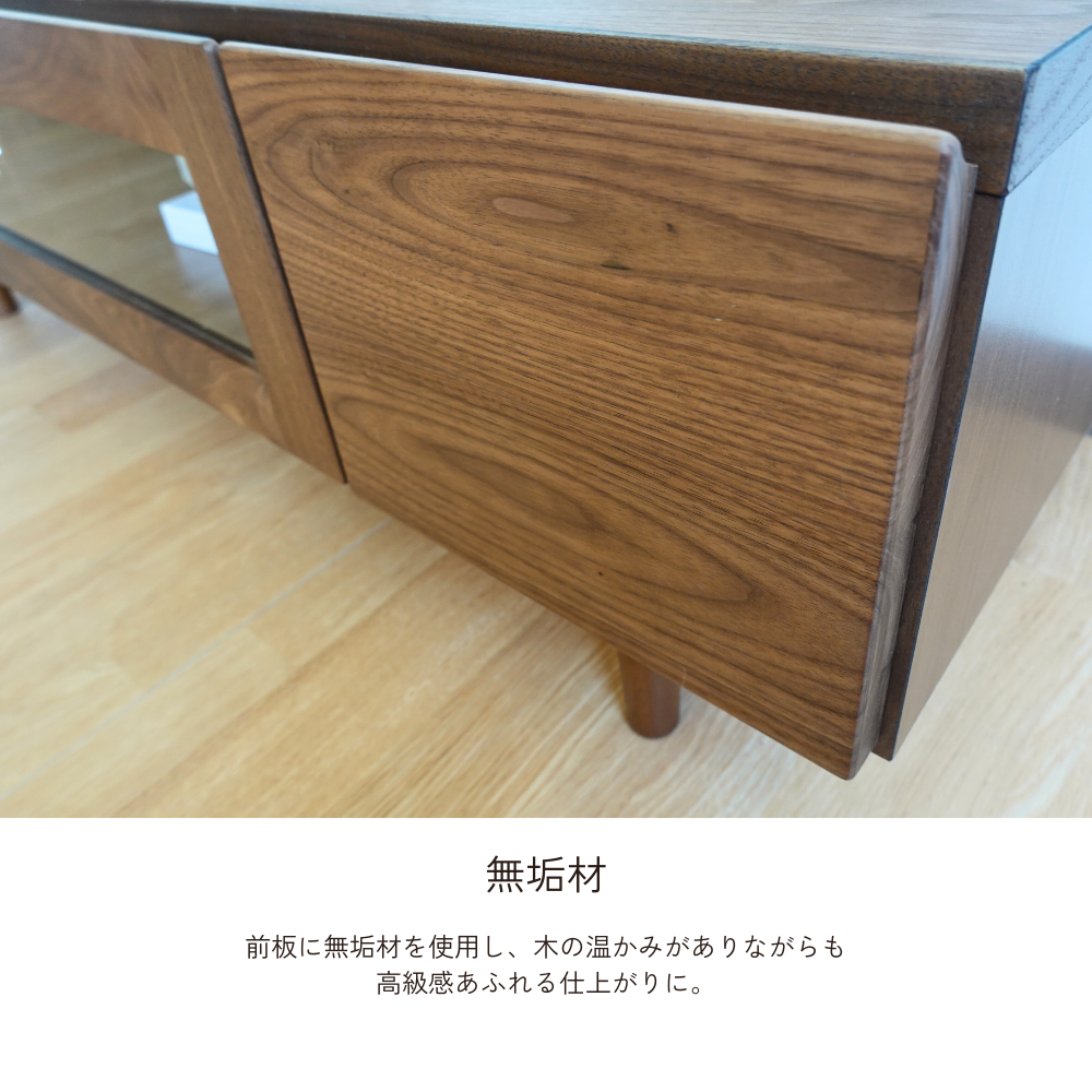 前板に無垢材を使用し、木の温かみが感じられるTVボードです。