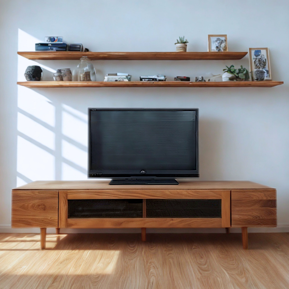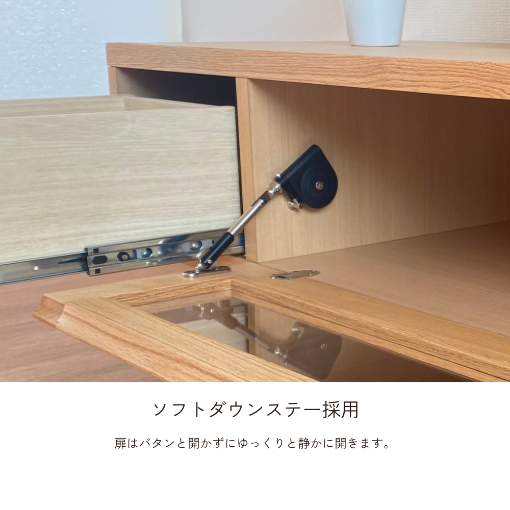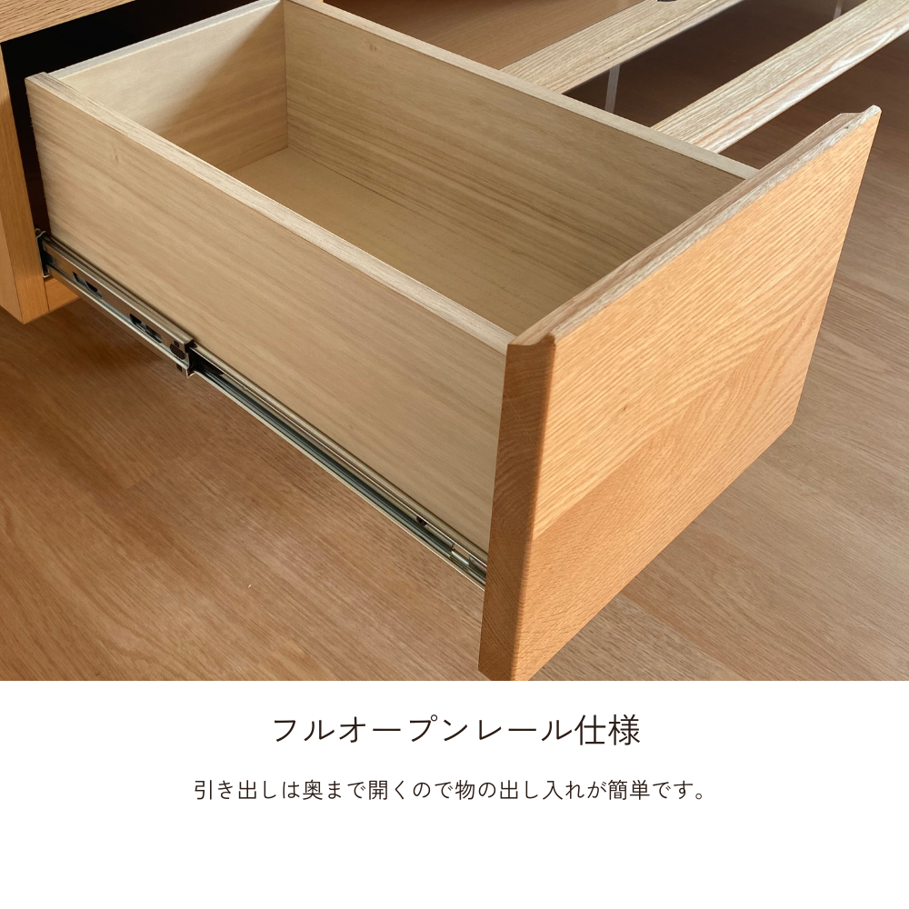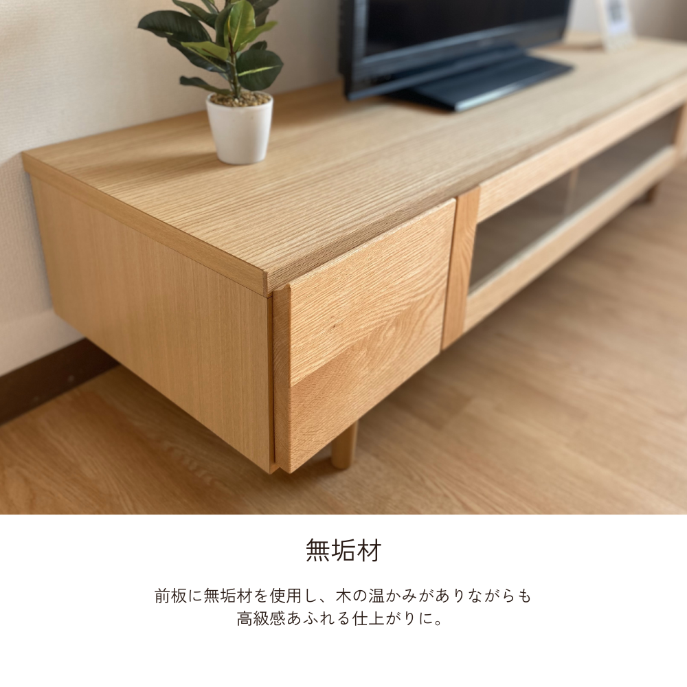前板に無垢材を使用し、木の温かみが感じられるTVボードです。