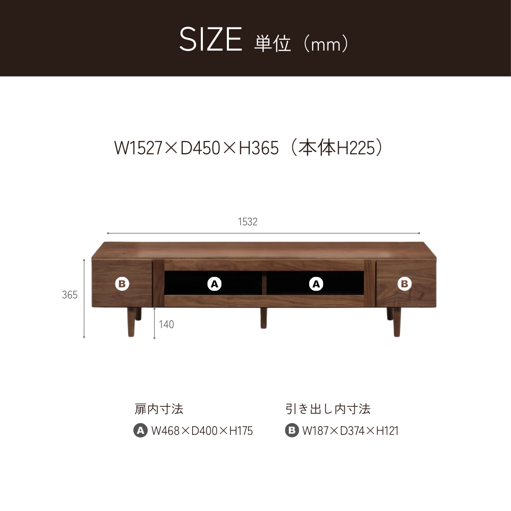 サイズ W152.7×D45×H36.5(cm