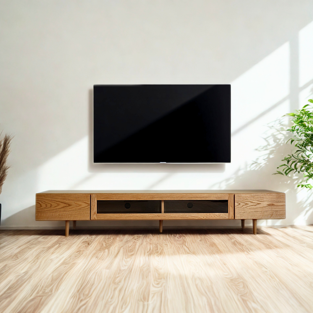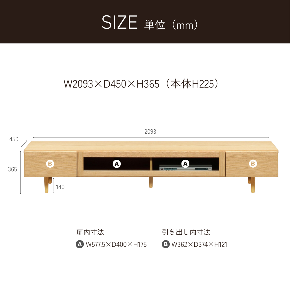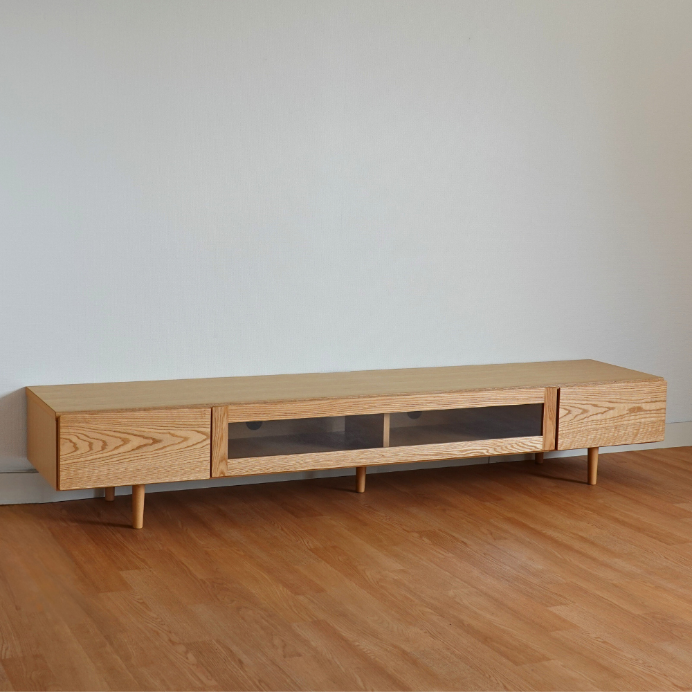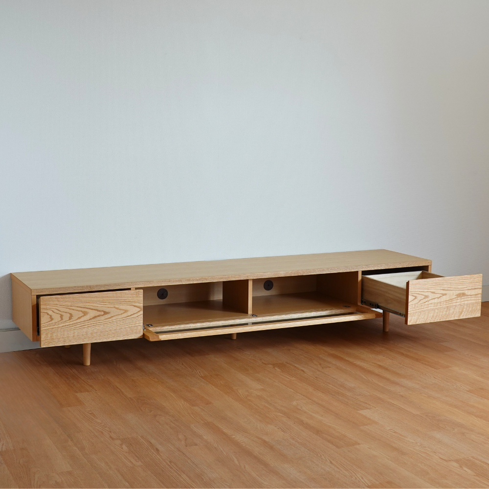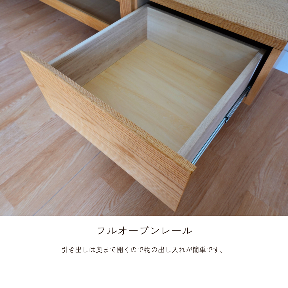 前板に無垢材を使用し、木の温かみが感じられるTVボードです。