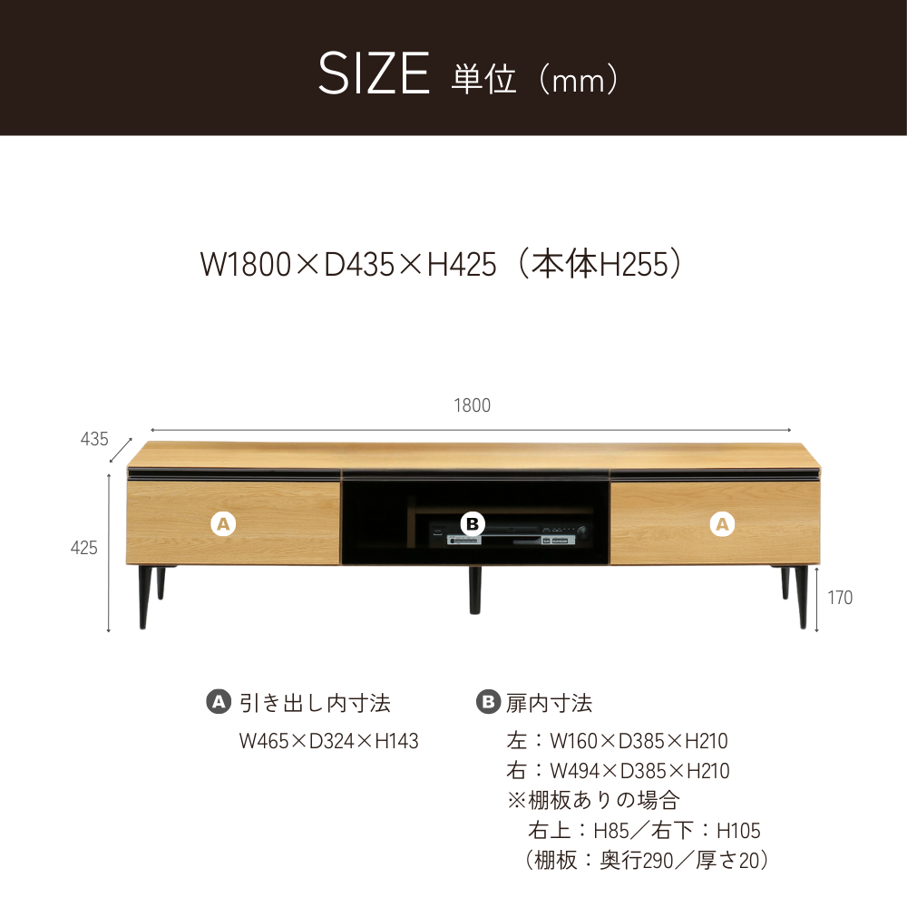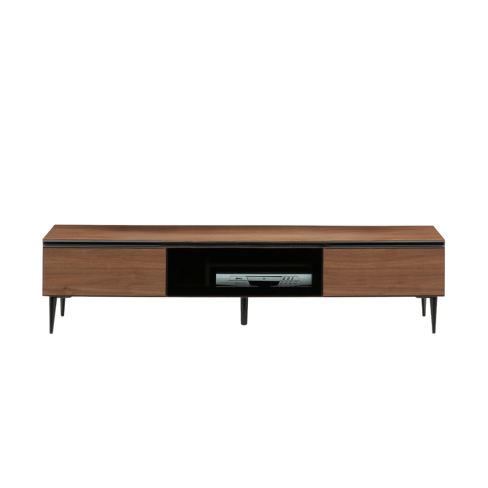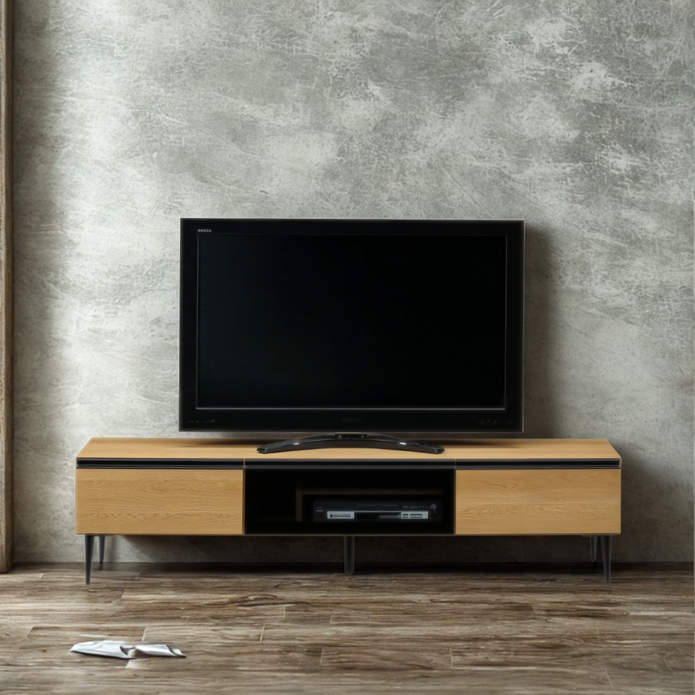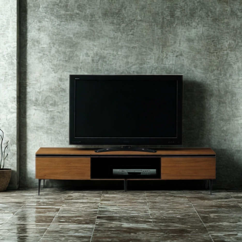 木目×ブラックで洗練されたデザインのテレビボードです。
