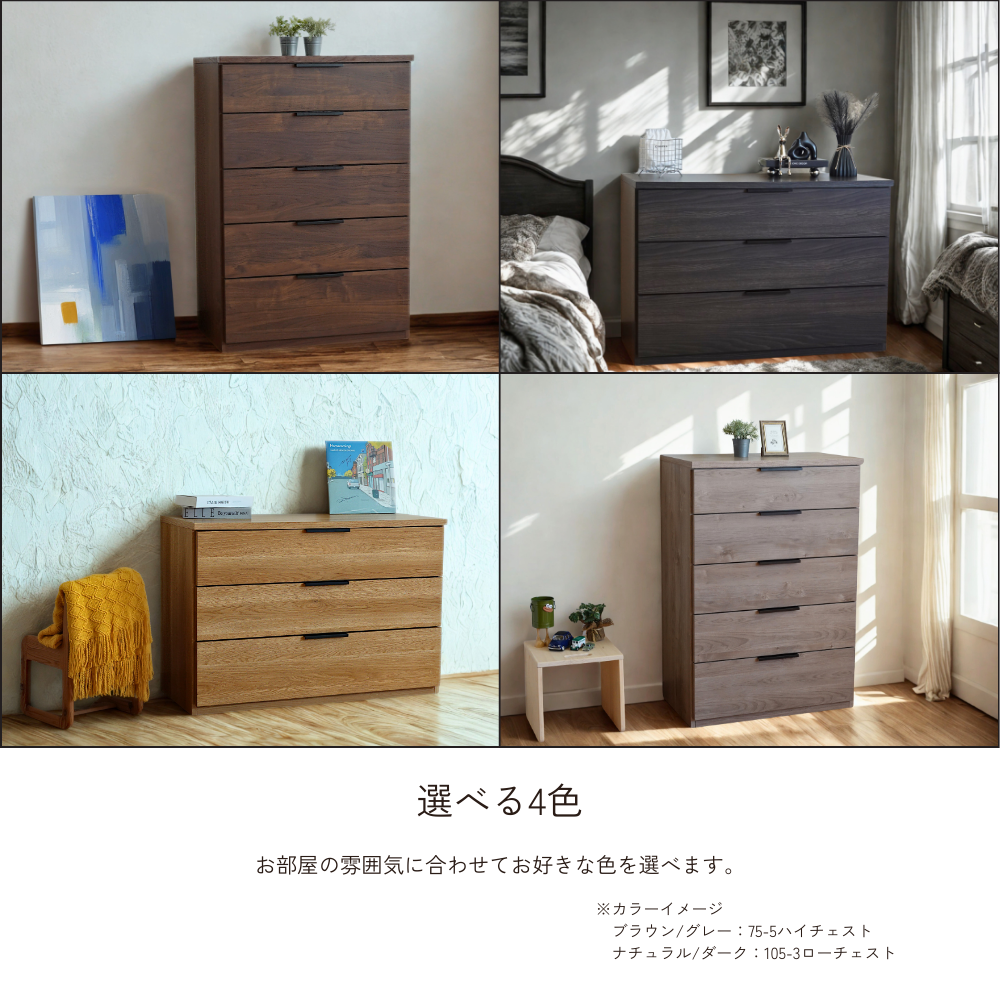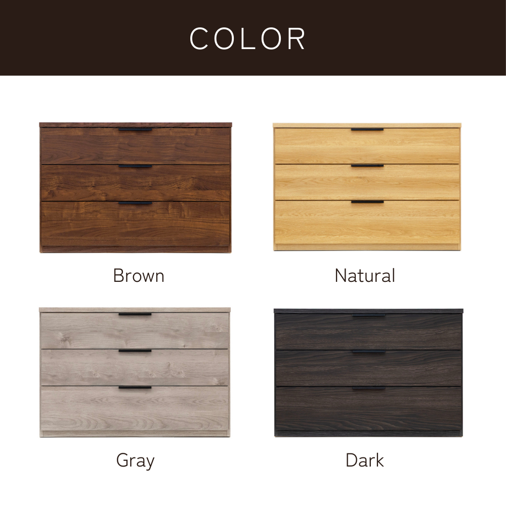 4色展開でサイズ感にもこだわったローチェストです。お部屋の雰囲気に合わせてお好きなカラーをお選びいただけます。