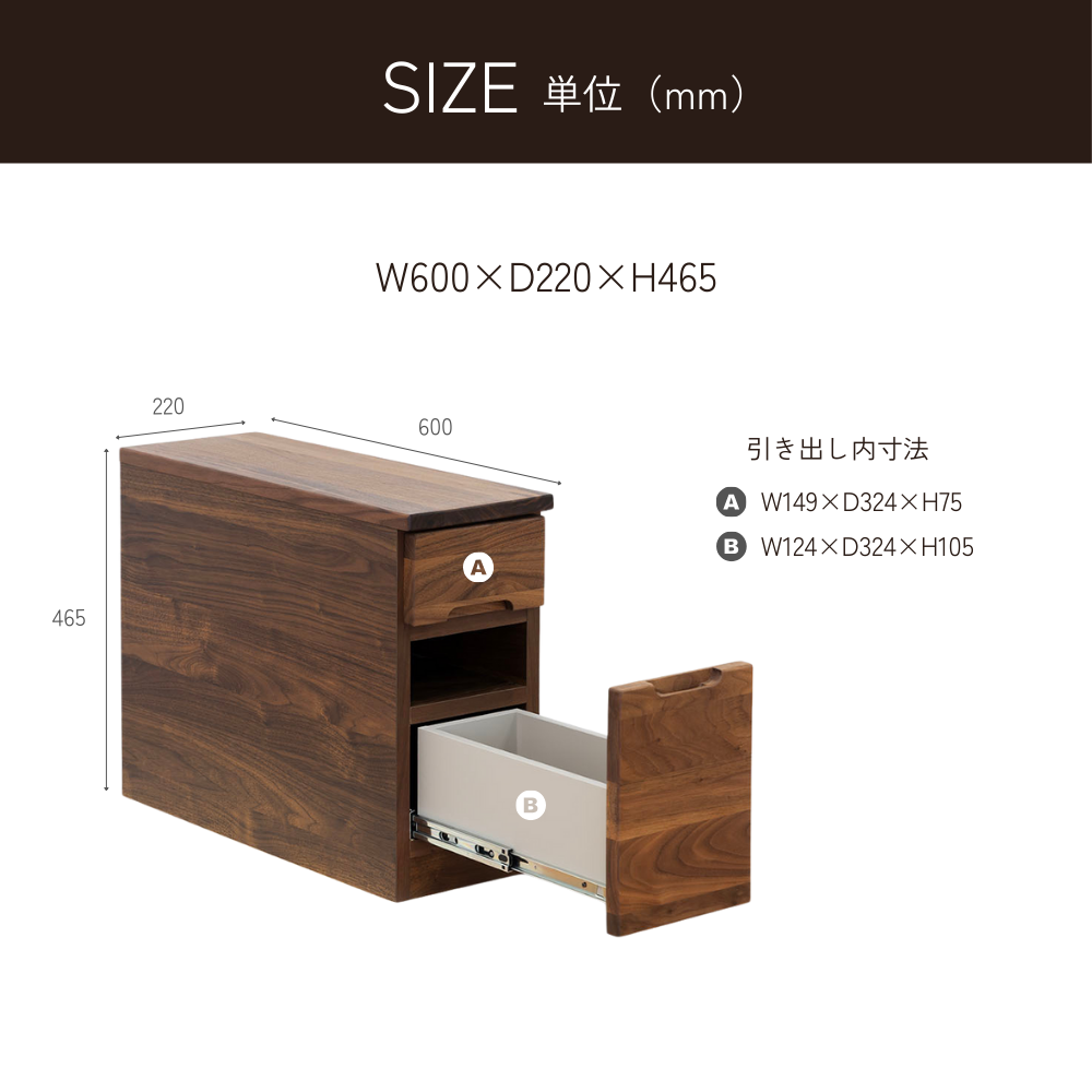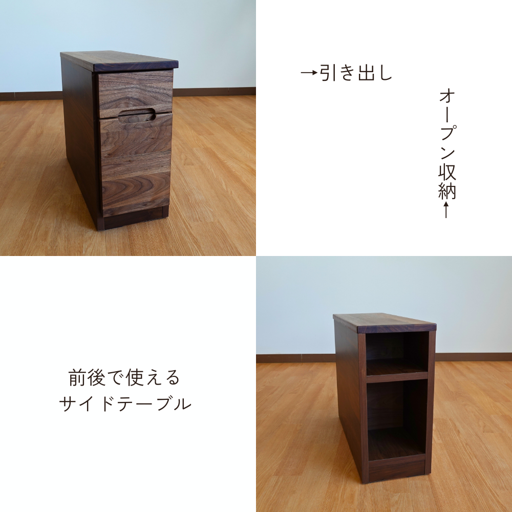 3材種から選べる収納付き・前後で使えるサイドテーブルです。