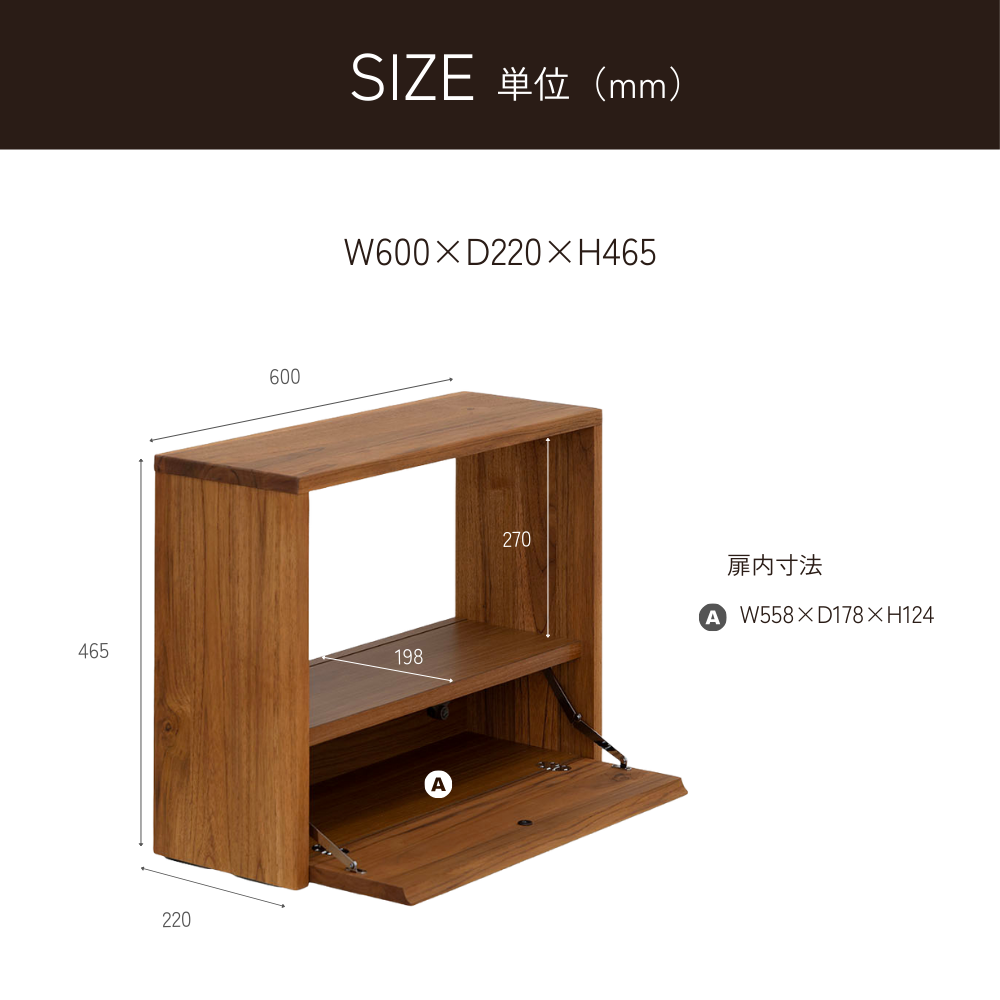 サイズ W60×D22×H46.5(cm